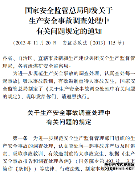 國家安全監(jiān)管總局印發(fā)關(guān)于 生產(chǎn)安全事故調(diào)查處