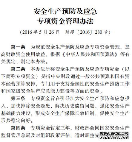 安全生產(chǎn)預(yù)防及應(yīng)急 專項(xiàng)資金管理辦法