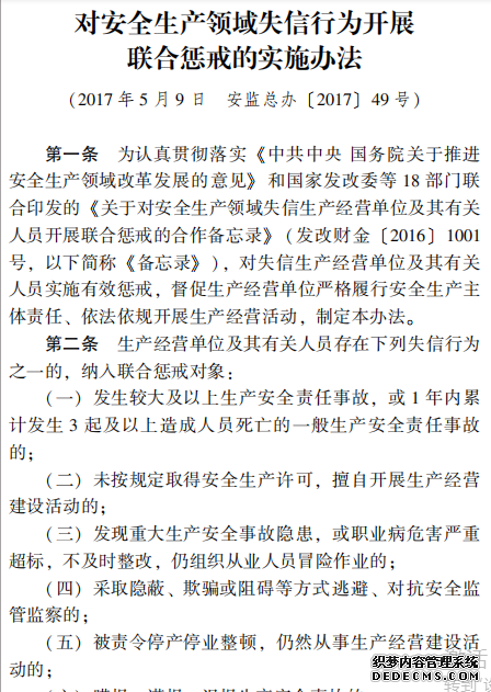 對安全生產(chǎn)領域失信行為開展 聯(lián)合懲戒的實施辦