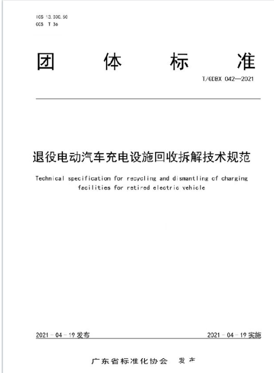 廣東省標協(xié)發(fā)布《退役電動汽車充電設施回收拆解技術規(guī)范》團標
