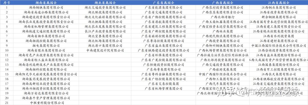 湖南、湖北、廣東、廣西及江西,這5個(gè)省份及省級(jí)行政區(qū),共設(shè)立了87家省屬國(guó)企。其中湖南省21家、廣東省18家、廣西省19家、江西省19家。