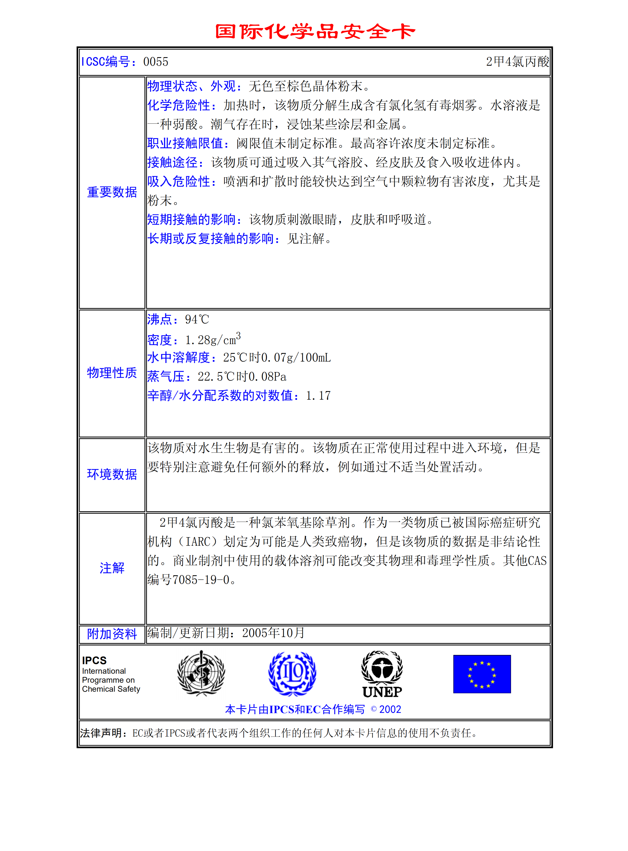 2甲4氯MSDS