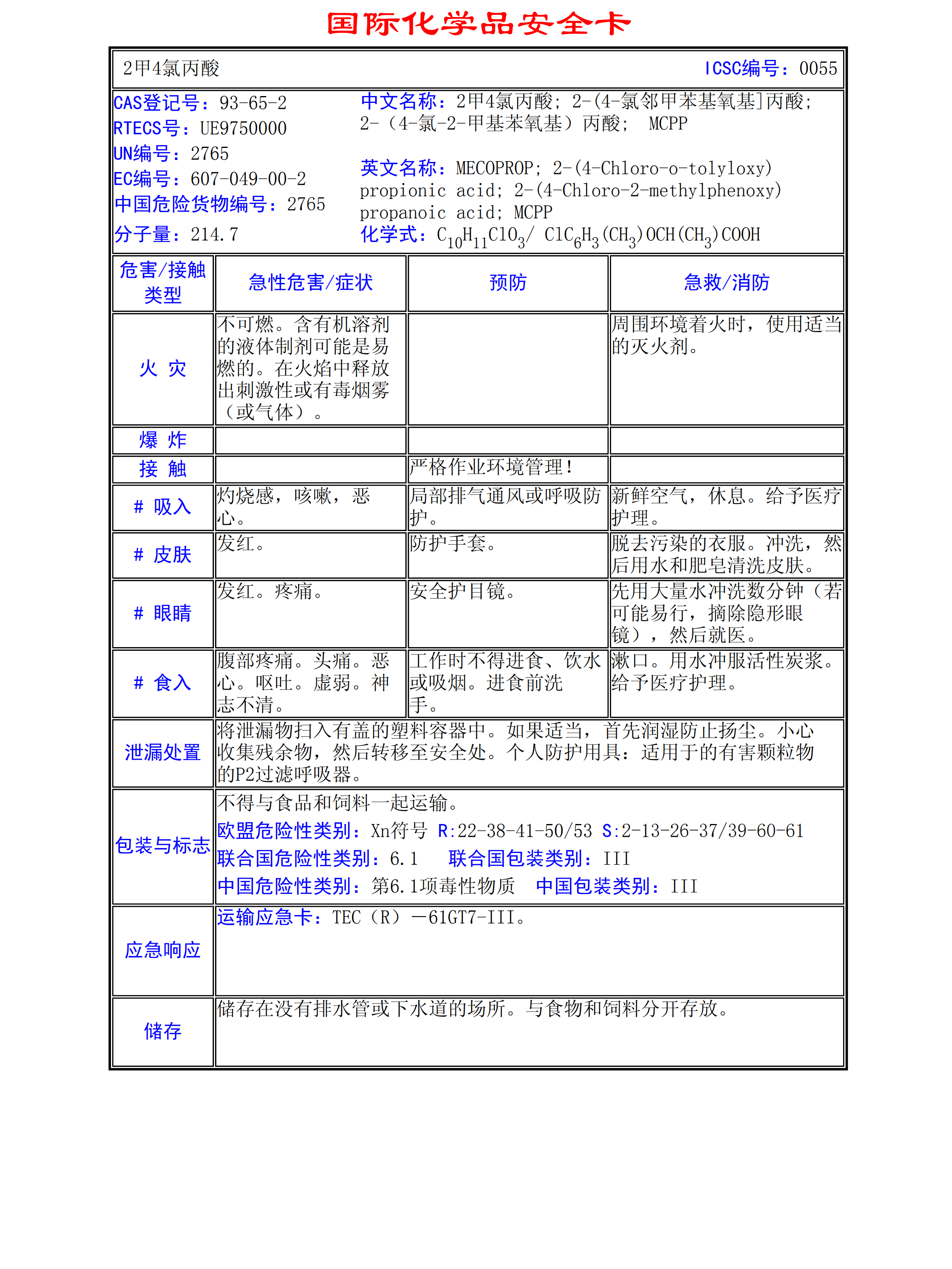 2甲4氯丙酸MSDS