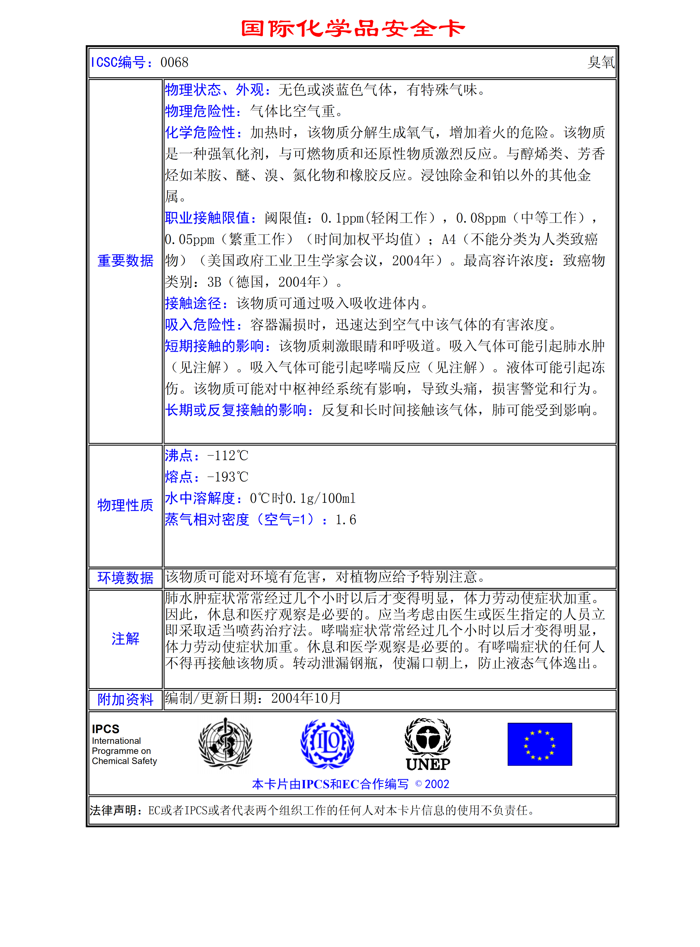 臭氧MSDS