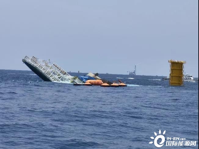 7月26日,中廣核惠州風(fēng)電項目“升平001”號作業(yè)船施工平臺發(fā)生傾斜事故后,搜救行動進(jìn)入第二天,仍有4人失聯(lián)!據(jù)了解,"升平001"施工平臺露出水面部分在緩慢減小,有趨向沉沒的跡象,平臺上面的鐵架已倒入水下。
