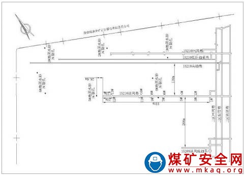 15210 回風(fēng)巷、15210 低位抽采巷、15210 高抽巷(已掘到位封閉),巷道南側(cè)布置有 15209 進風(fēng)底抽巷。15210 進風(fēng)巷及相鄰區(qū)域基