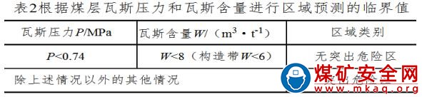 (1)區(qū)域突出危險性預(yù)測采用直接測定法測定煤層瓦斯含量 W 和煤層瓦斯壓力 P,由鉆機隊施工 4 個預(yù)測孔,防突工負(fù)責(zé)現(xiàn)場監(jiān)督、采集數(shù)據(jù),出具突出危險性預(yù)測報告單,經(jīng)防突隊、科、礦有關(guān)領(lǐng)導(dǎo)審核簽字確認(rèn)后執(zhí)行區(qū)域防突措施。