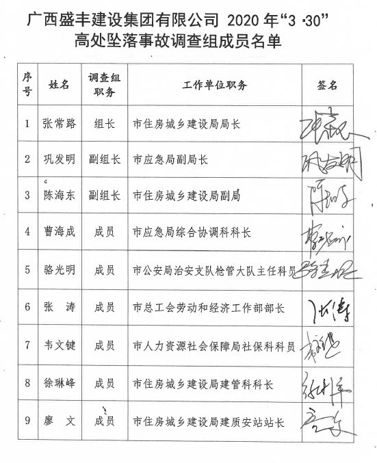 廣西盛豐建設(shè)集團(tuán)有限公司中央商務(wù)區(qū)·翡翠園15號(hào)樓工程2020年“3·30”高處墜落事故調(diào)查