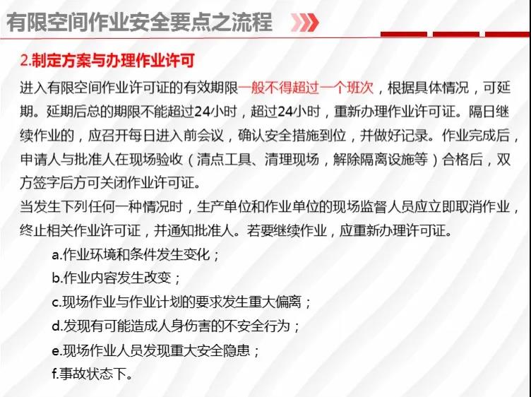 一要立即開展有限空間安全風(fēng)險(xiǎn)排查。春節(jié)假期剛過,各類企業(yè)集中復(fù)工復(fù)產(chǎn),涉及有限空間作業(yè)安全的檢維修、調(diào)試行為增多,加之氣溫逐漸升高,造成有限空間中有毒有害氣體集聚,安全風(fēng)險(xiǎn)加劇。各地各有關(guān)部門要督促涉及有限空間作業(yè)的工礦商貿(mào)企業(yè)以及市政工程、垃圾發(fā)電、燃?xì)?、熱力、排水、衛(wèi)生、環(huán)保等重點(diǎn)單位、重點(diǎn)區(qū)域、重點(diǎn)場(chǎng)所開展全方位的風(fēng)險(xiǎn)隱患排查。對(duì)發(fā)現(xiàn)的風(fēng)險(xiǎn)隱患,企業(yè)要逐一登記造冊(cè),向負(fù)有安全監(jiān)管職責(zé)的部門報(bào)告,并按照《有限空間作業(yè)安全指導(dǎo)手冊(cè)》(應(yīng)急廳函〔2020〕299號(hào))要求落實(shí)各項(xiàng)防范措施。