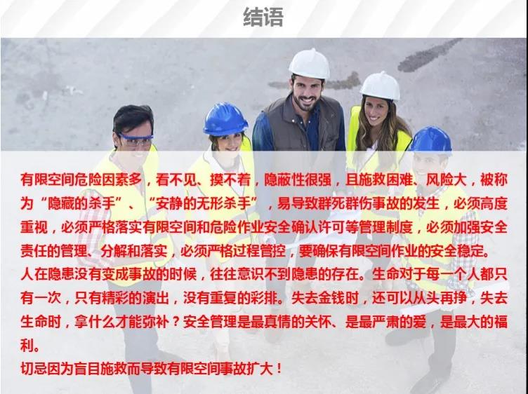 事故暴露出企業(yè)和從業(yè)人員對(duì)有限空間風(fēng)險(xiǎn)辨識(shí)不清、試生產(chǎn)過程中安全防范措施不到位、盲目施救導(dǎo)致傷亡擴(kuò)大等問題,也暴露出監(jiān)督管理存在薄弱環(huán)節(jié)等問題。省政府領(lǐng)導(dǎo)高度重視,王清憲省長(zhǎng)、鄧向陽常務(wù)副省長(zhǎng)、張紅文副省長(zhǎng)先后作出批示,要求妥處善后,查清原因,嚴(yán)格追責(zé)。為深刻吸取事故教訓(xùn),堅(jiān)決遏制類似事故再次發(fā)生,現(xiàn)提出以下工作要求,請(qǐng)結(jié)合本地區(qū)本部門實(shí)際認(rèn)真貫徹執(zhí)行。