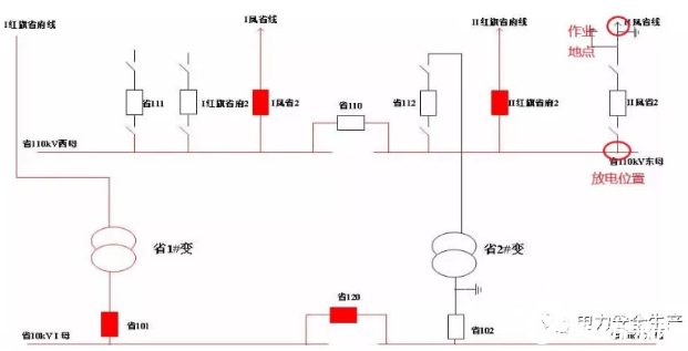 事發(fā)項(xiàng)目為某公司110千伏某變電站110千伏配電裝置改造,改造內(nèi)容為更換110千伏室內(nèi)敞開(kāi)式手車斷路器,施工中標(biāo)單位為某集團(tuán)有限公司電力安裝分公司(省管產(chǎn)業(yè)單位,簡(jiǎn)稱“安裝分公司”)。為不影響重要用戶供電,改造期間變電站采用Ⅰ紅旗省府線直接串帶省1#變、Ⅱ鳳省線直接串帶省2#變的過(guò)渡方式運(yùn)行。6月12日改造完成后,110千伏母線恢復(fù)運(yùn)行。(運(yùn)行方式見(jiàn)圖1、圖2)