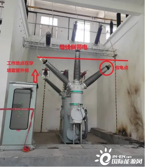 此時(shí),110千伏II鳳省2開(kāi)關(guān)處于冷備用狀態(tài),II鳳省2東刀閘母線側(cè)帶電。6月17日19時(shí)13分,安裝分公司工作負(fù)責(zé)人孫某和變電運(yùn)維正值沈某前往II鳳省2開(kāi)關(guān)間隔,違規(guī)使用鋼卷尺進(jìn)行測(cè)量工作(非工作票所列作業(yè)內(nèi)容),在鋼卷尺靠近帶電的母線引下線過(guò)程中發(fā)生放電,導(dǎo)致孫某觸電死亡,沈某被嚴(yán)重?zé)齻?。(事發(fā)發(fā)生現(xiàn)場(chǎng)見(jiàn)圖3)