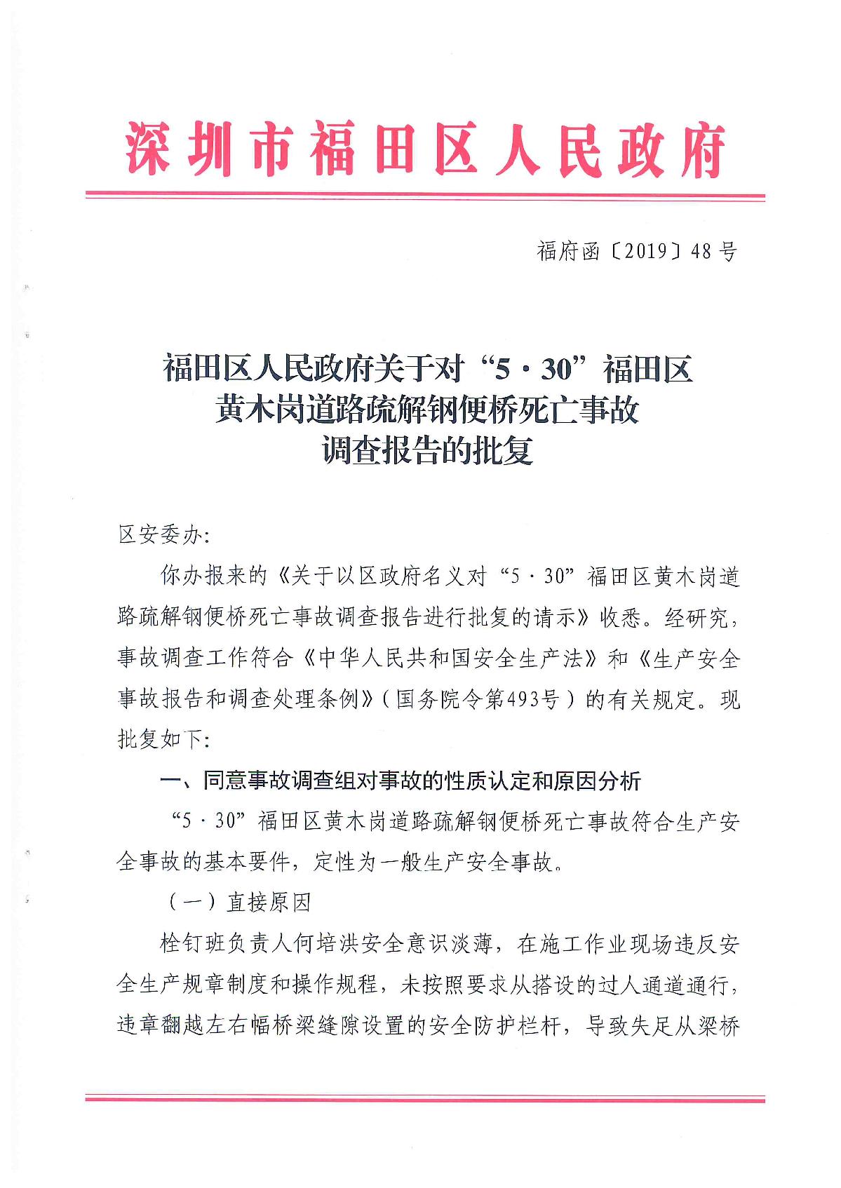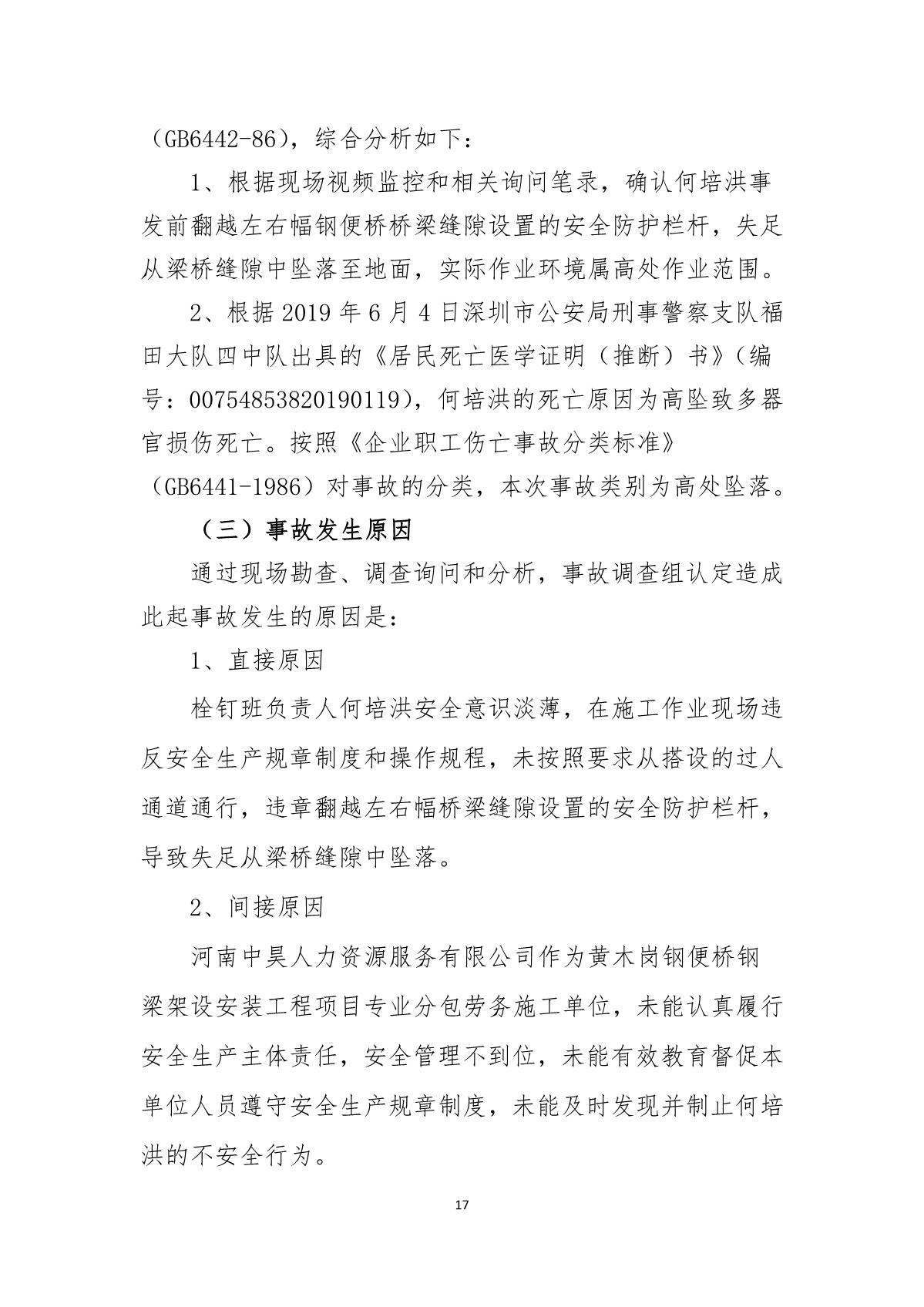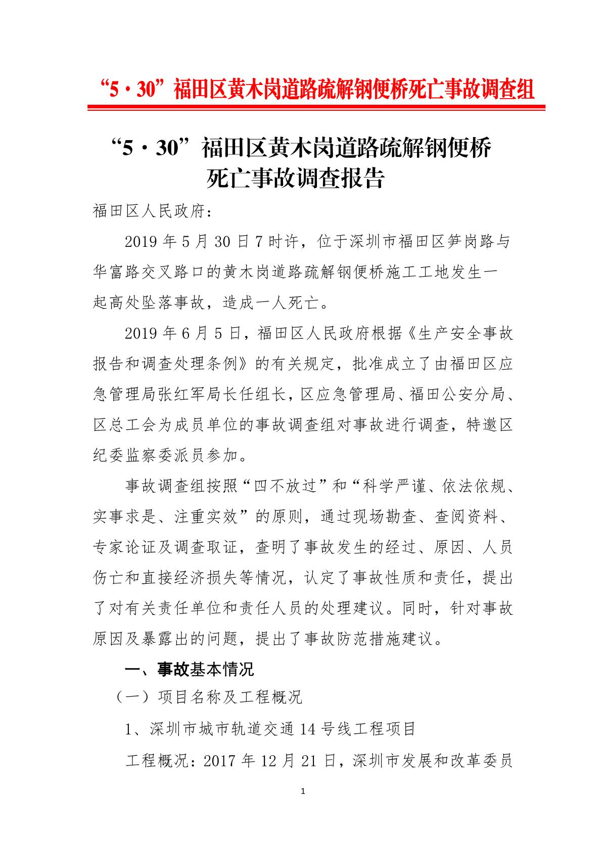 “5.30”福田區(qū)黃木崗道路疏解鋼便橋死亡事故調(diào)查報告