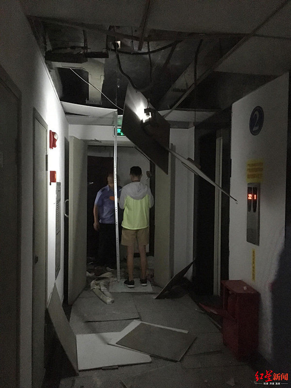 紅星新聞?dòng)浾呲s到現(xiàn)場(chǎng)發(fā)現(xiàn),該住戶家中一片狼籍,防盜門整體已經(jīng)彎曲,除了屋內(nèi),外面的過(guò)道和一戶鄰居家中,也被震得七零八落。