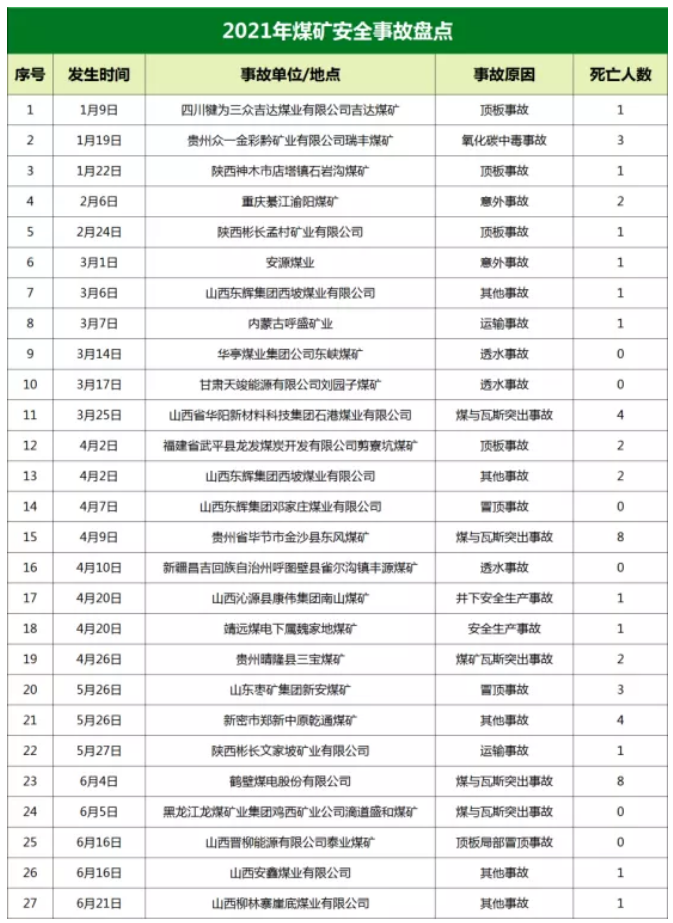 隨著國家政府的重拳出擊,煤礦安全問題取得了不錯的成績,國際能源網(wǎng)記者從2021年1月8日召開的全國礦山安全生產(chǎn)工作會議上獲悉,2020年共發(fā)生煤礦事故 122起、死亡225人,同比下降28.2%和28.8%;全年未發(fā)生重特大瓦斯事故,是新中國成立以來首次。據(jù)統(tǒng)計,2021年以來,我國共發(fā)生煤礦事故27起、死亡49人。其中,山西省作為產(chǎn)煤大省,也成為了煤礦事故的重災(zāi)區(qū)。截至目前,山西省已發(fā)生8起煤礦事故。雖然煤礦事故總體數(shù)量在減少,但從能源全行業(yè)看,它依舊是事故高發(fā)的重災(zāi)區(qū)。少報、瞞報煤礦事故的情況時有發(fā)生。