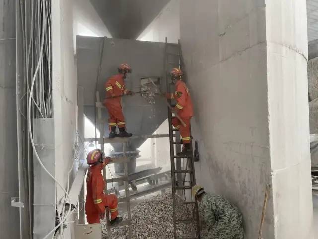 消防救援人員趕到現(xiàn)場后,經偵查和詢問得知,石灰斗罐罐體約2米深,裝有約5立方米石灰料。
