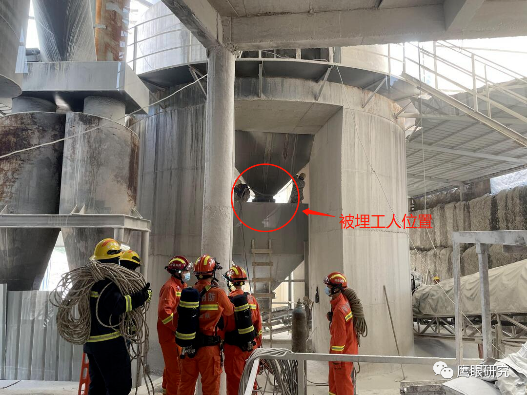 事發(fā)時,被困工人發(fā)現(xiàn)石灰斗罐下料口被堵塞,便進入斗罐底部開展疏通工作,罐壁四周的石灰塊突然崩塌,造成該工人當場被石灰料埋壓,埋壓深度約1.7米。