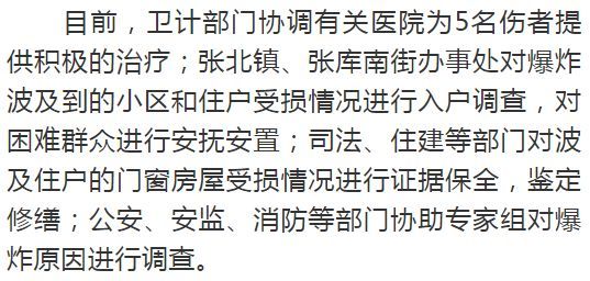 2018年10月2日18時28分,張北縣金華郡都小區(qū)12號樓1單元302室發(fā)生爆炸,共造成5人受傷。