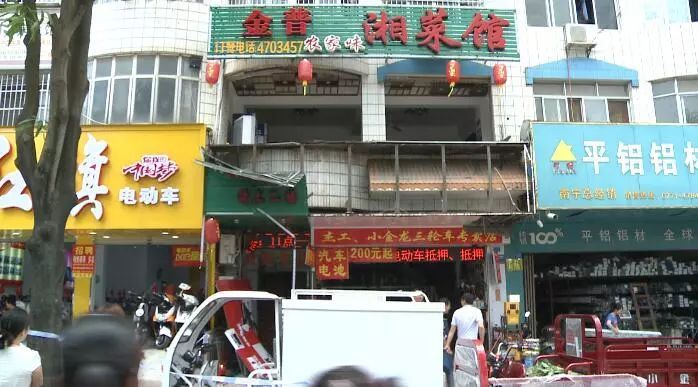 記者趕到這家餐廳時(shí)看到,現(xiàn)場(chǎng)已經(jīng)拉起了警戒線,消防人員也已離開(kāi),派出所民警正在對(duì)過(guò)往行人進(jìn)行疏導(dǎo)。事發(fā)餐廳位于人行道邊2樓的位置,沿街的玻璃已經(jīng)全部震碎,并散落到人行道上,餐廳1樓電動(dòng)車修理鋪的招牌也在事故中被震落。