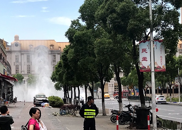 據(jù)目擊者介紹,事發(fā)時(shí)看到和炯路三彩路噴出大量白色煙氣,氣體噴射高度約有10米,氣體噴出時(shí),發(fā)出巨大的“嗤嗤”聲,附近街道上彌漫著煤氣味。接到報(bào)警后,相關(guān)部門迅速到場,民警在事發(fā)地附近多個路口拉起警戒線,并疏散圍觀市民。消防隊(duì)員鋪設(shè)水帶,并在泄漏點(diǎn)附近打起水幕,防止現(xiàn)場氣體遇火星后發(fā)生發(fā)生危險(xiǎn)。燃?xì)夤緭屝奕藛T則尋找該管道閥門,約1小時(shí)后,閥門被關(guān)閉,氣體停止噴射。