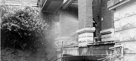 就在消防官兵拉著水帶去