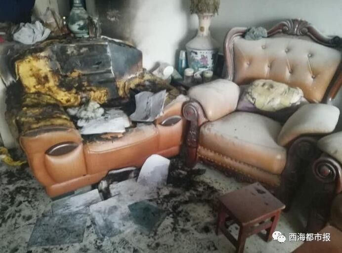 走進事發(fā)的住戶家,屋里一片狼藉,沙發(fā)、電視機、洗衣機、電燈開關(guān)等物品被燒,臥室和客廳的玻璃碎了。家里養(yǎng)的小貓蜷在陽臺上一動不動,它的嘴巴在流血,胡子和尾巴被燒。